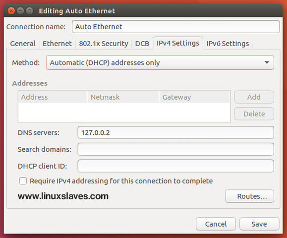 After installing DNSCrypt, you need to set the network connection DNS server to 127.0.0.2. We can use Network Manager GUI to change the DHCP settings.